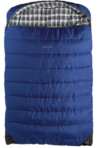 A double layer offset and quilted design eliminates cold spots in this warm two person sleeping bag from Outbound. Complete with a hood, zipper baffles and a thermal collar around the neck, the Double Deluxe is rated down to 20° for those cold nights. Filled with 6lbs of Outbound's own Quadratherm insulation and lined with a heavyweight and very soft flannel, the Double Deluxe is comfy, cozy and warm.The Double Deluxe Sleeping Bag from Outbound Outdoors allows two people to sleep together comfortably in temperatures down to 20 degrees Fahrenheit. The sleeping bag is filled with six pounds of Quadratherm hollow fiber synthetic insulation and features offset stitching with a quilted design to eliminate cold spots. Meanwhile, the soft, heavyweight cotton flannel interior is warm and cozy to the touch and the durable 210T Rip-stop polyester shell keeps the cold out. The sleeping bag is equipped with a 15-inch hood for head warmth as well as zipper baffles to prevent drafts, and a thermal collar around the neck. The sleeping bag comes with a duffle style sack for storage and transport and carries a product lifetime warranty from Outbound to be free of defects in materials and workmanship for its usable life.