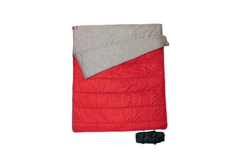 The Kelty Gemini 45 Degree Double Sleeping Bag provides all the comfort and warmth of your own bed, offering a great night's sleep on your next camping trip. It features a removable duffel bag stuff sack, which makes storage and transportation a breeze. Plus, you can unzip this versatile sleeping bag to create two separate single sleeping bags or blankets.Synthetic Polyester Fiber fillSingle layer constructionExternal storage pocket keeps small necessities close at handIntegrated, removable duffel bag style stuff sack .