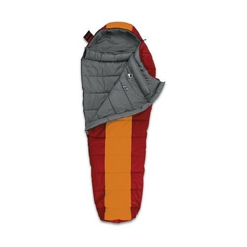Warm double layer off-set multi-needle quilt construction, fully adjustable contoured hood, adjustable storm collar, differential cut, and draft tube. Comfortable polyester taffeta liner, inside "stash pocket", fleece pillow pocket, and trapezoidal foot box, number 5, Comfort rating: +0 F. Size: 84"x32"x20" (Reg), 90"x34"x20" (Long). Fill/Carry weight: 3.5 lbs/5 lbs 1 oz (Reg), 3 lbs 14 oz/5.5 lbs 8 oz (Long). Zipper side: Right (Reg), Left (Long).